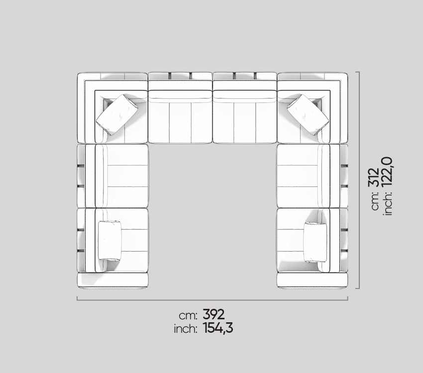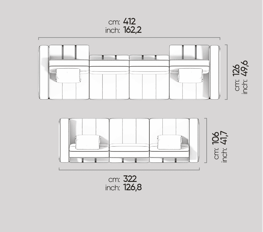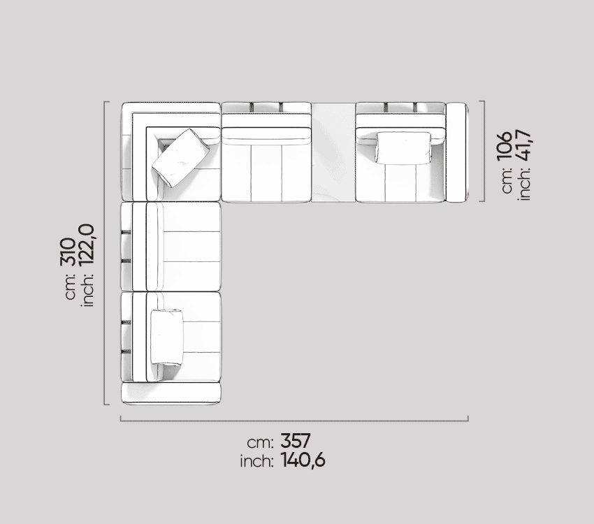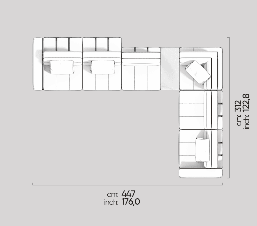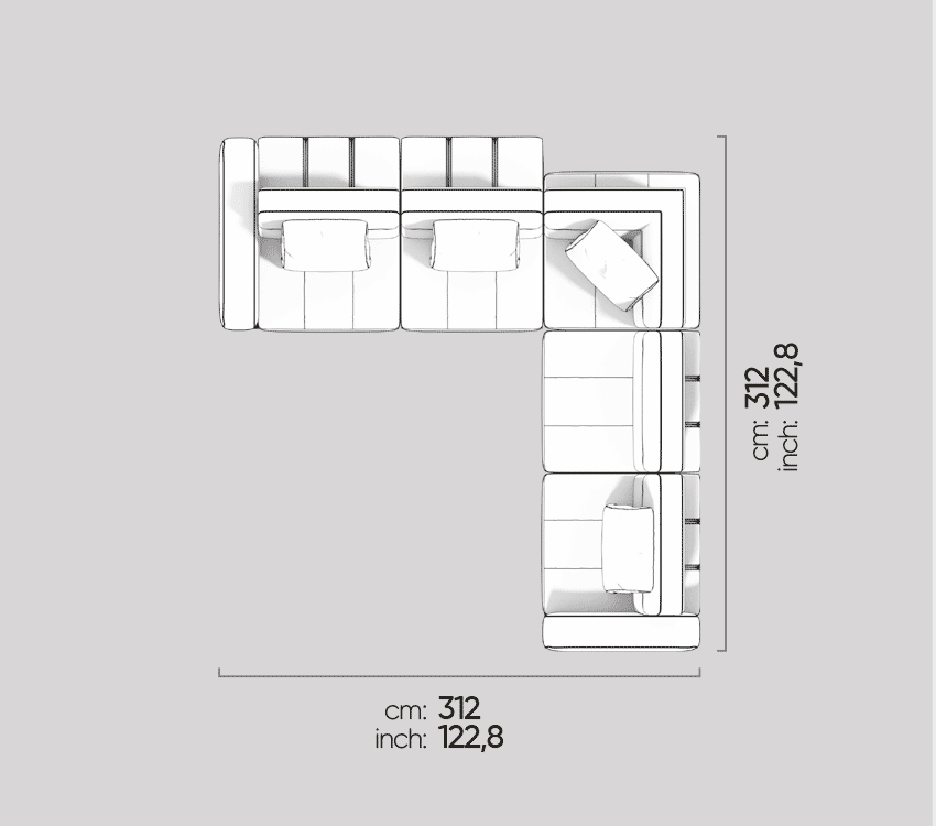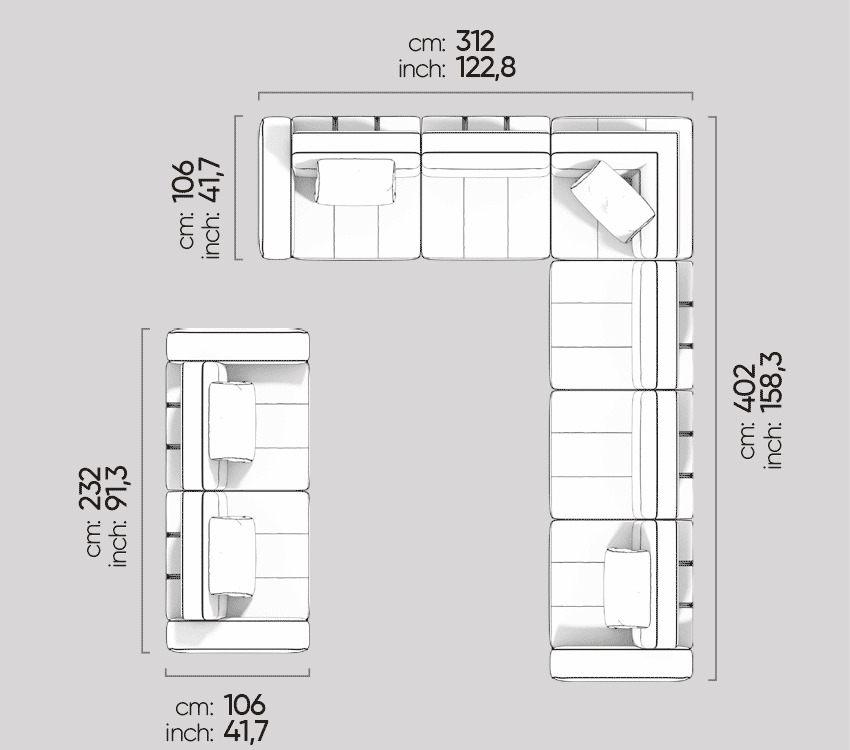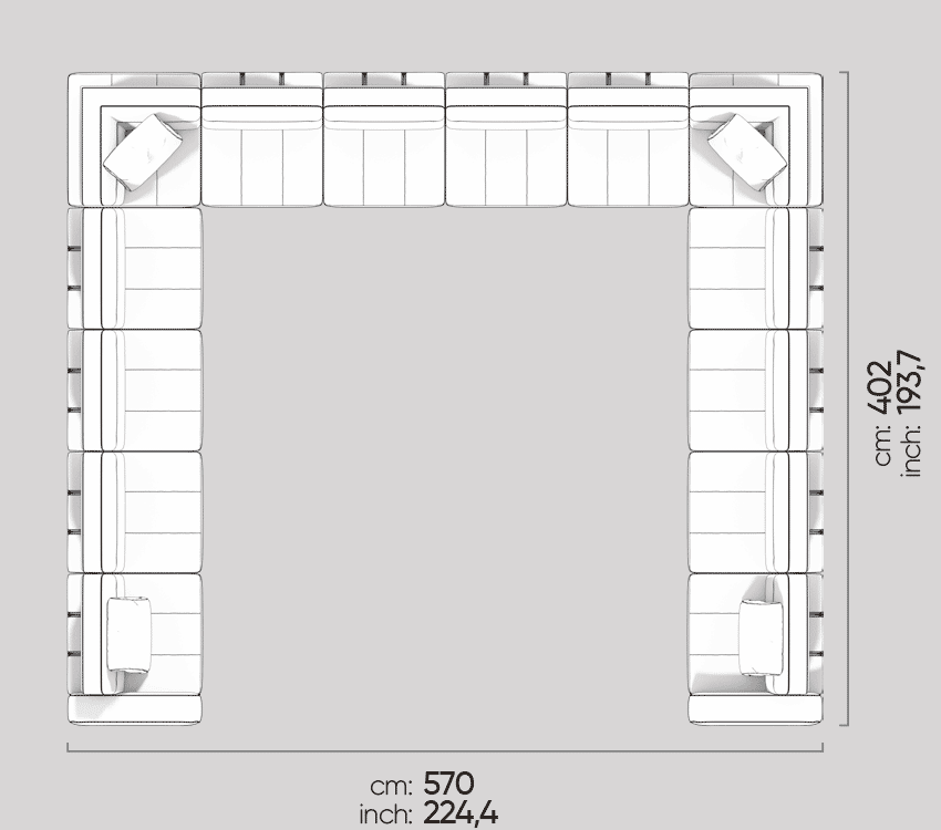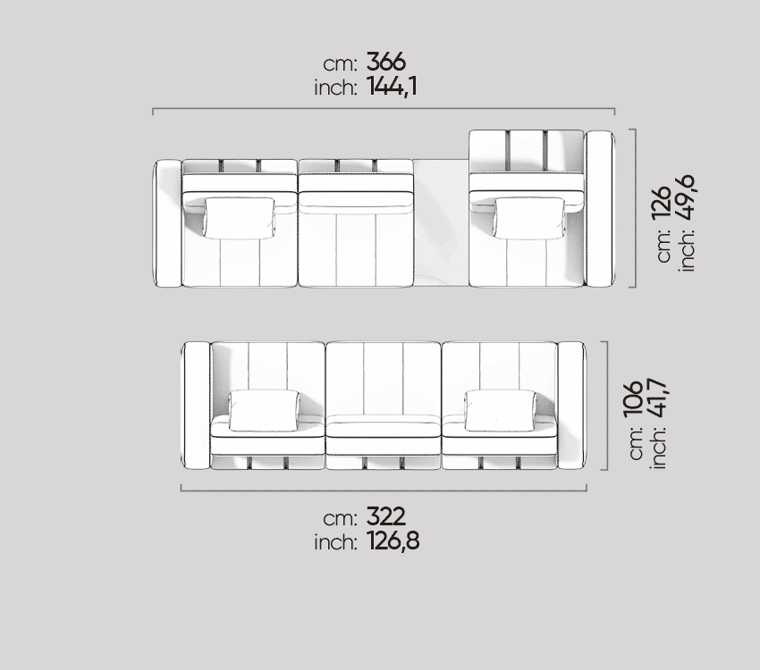 Morocco има 11 модула, лежанка, 1,5 местен диван и интермодулна кафе масичка, които позволяват 40 комбинации