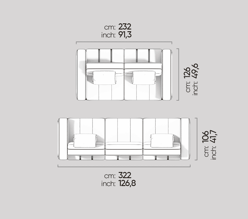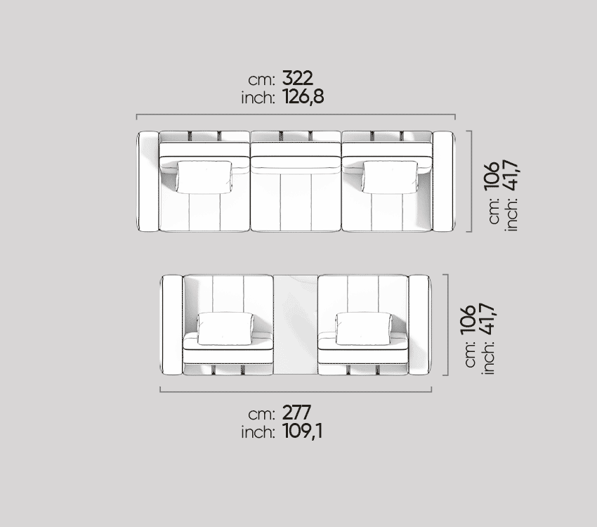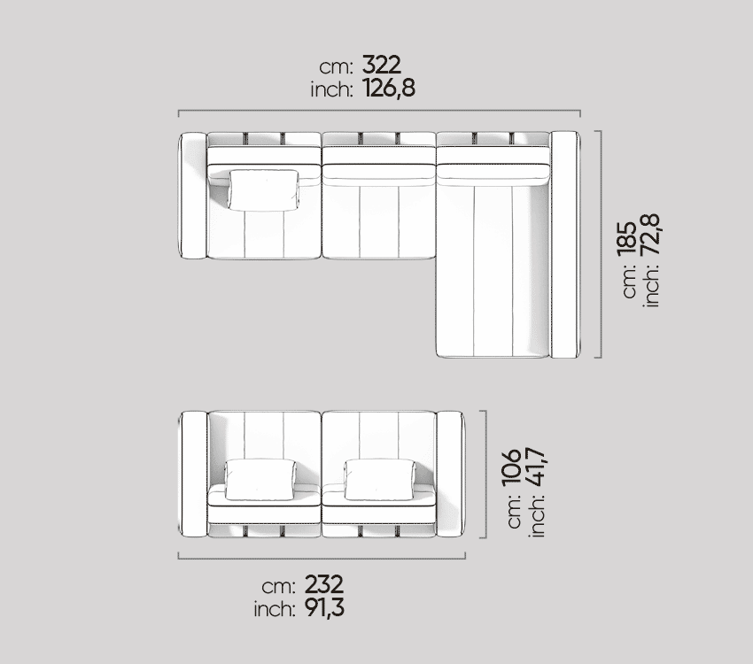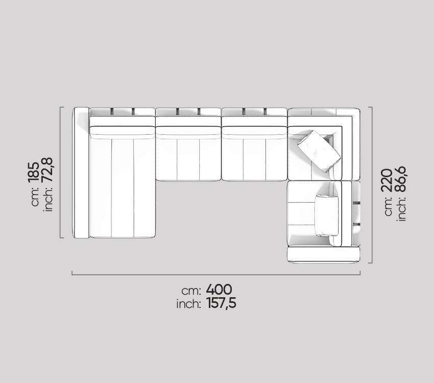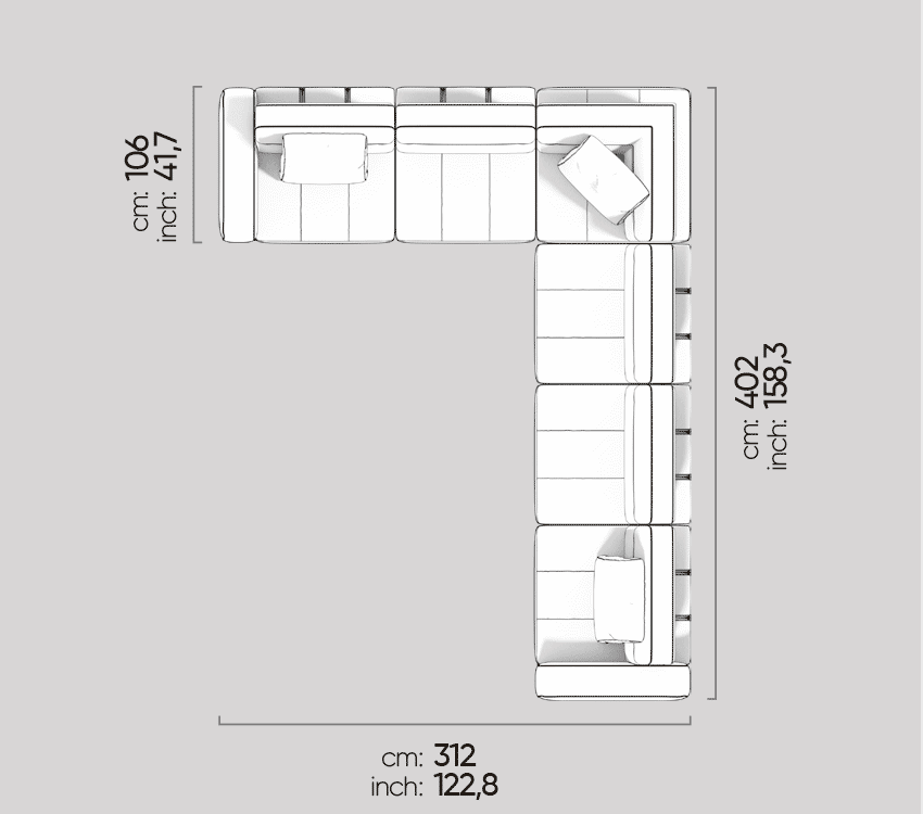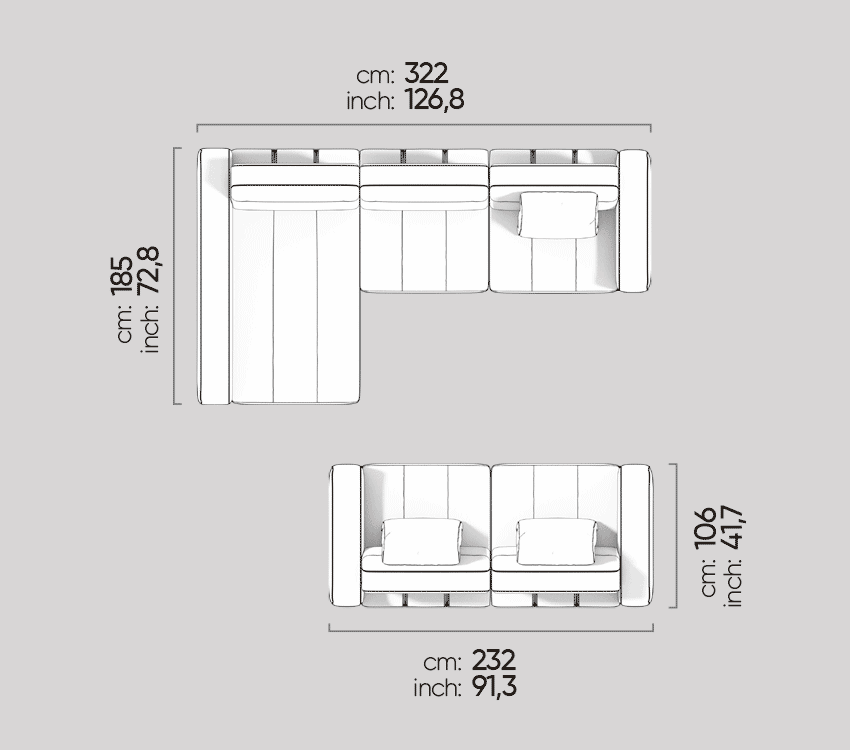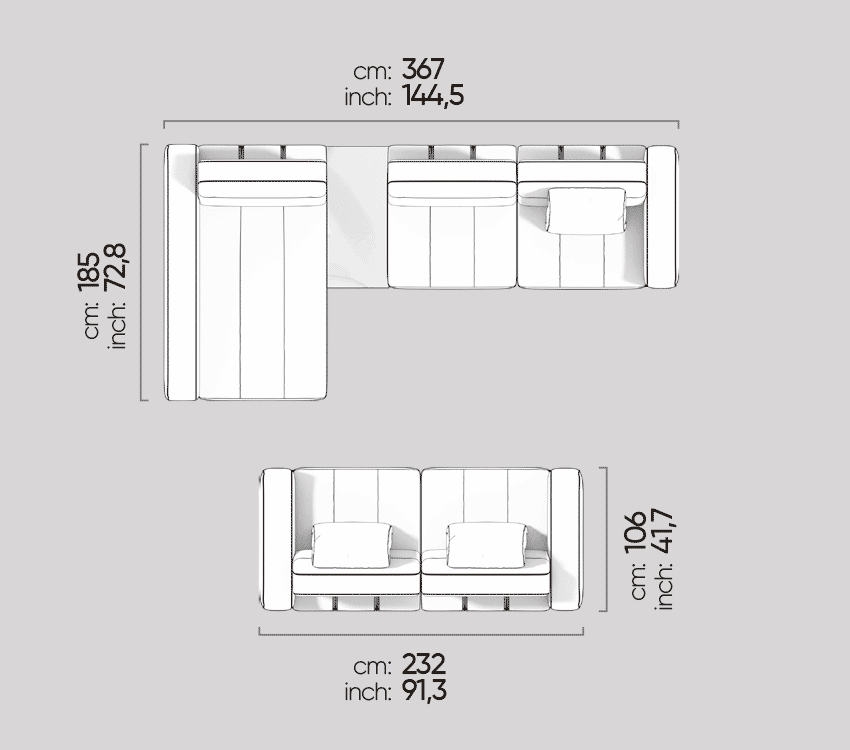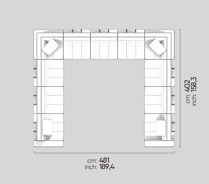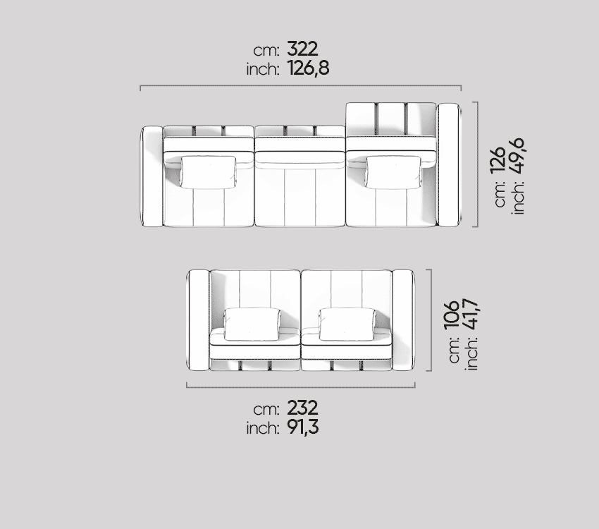 Morocco има 11 модула, лежанка, 1,5 местен диван и интермодулна кафе масичка, които позволяват 40 комбинации