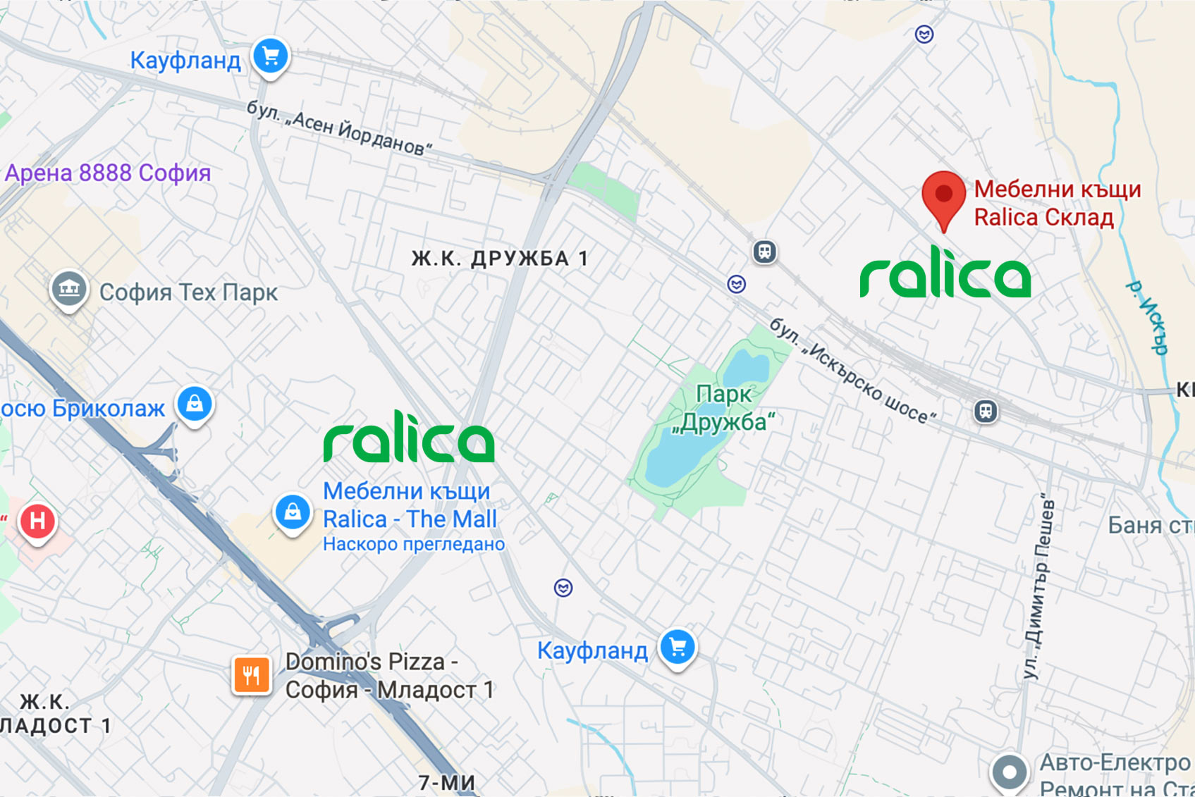 Адрес: Склад Мебелни къщи Ралица - ул. Неделчо Бончев № 6, склад № 26, 1000 София (виж на картата).