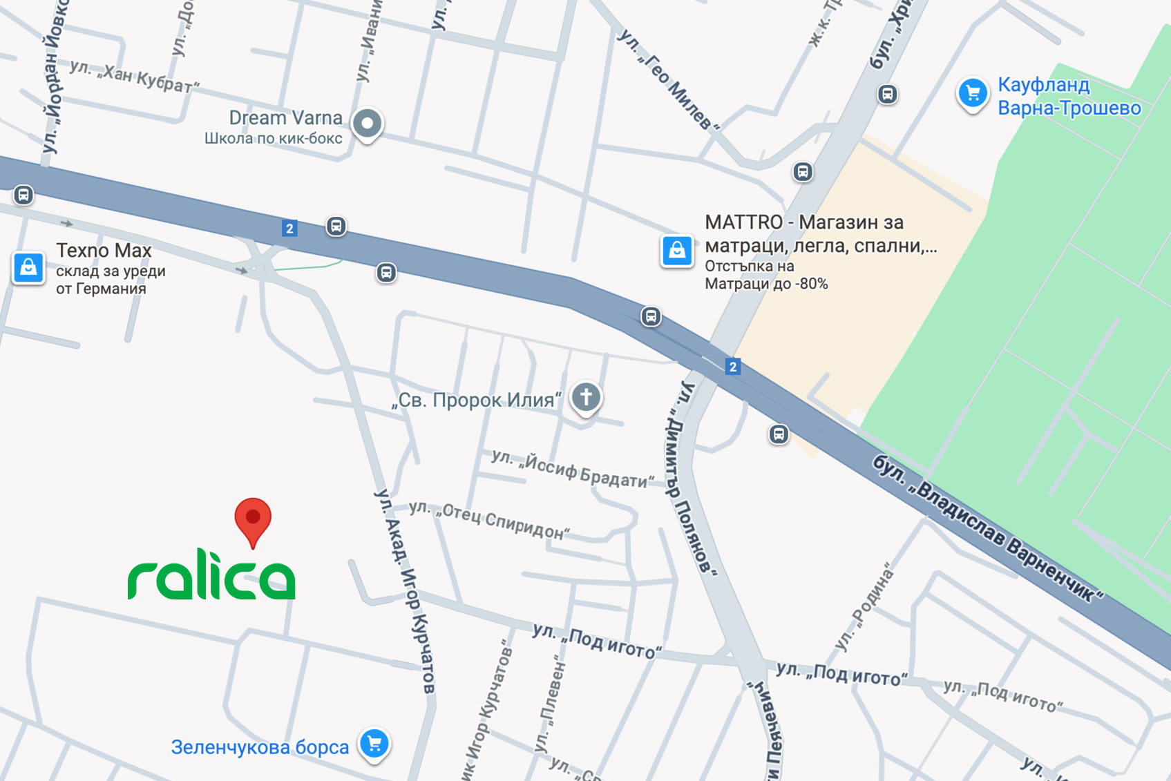 Адрес: Склад 1 - ул. „Академик Игор Курчатов“ 1, 9009 Варна, Зеленчукова борса (виж на картата). Склад 2 - ул. „Девня“ 16, 9000 Южна промишлена зона, Варна (виж на картата)