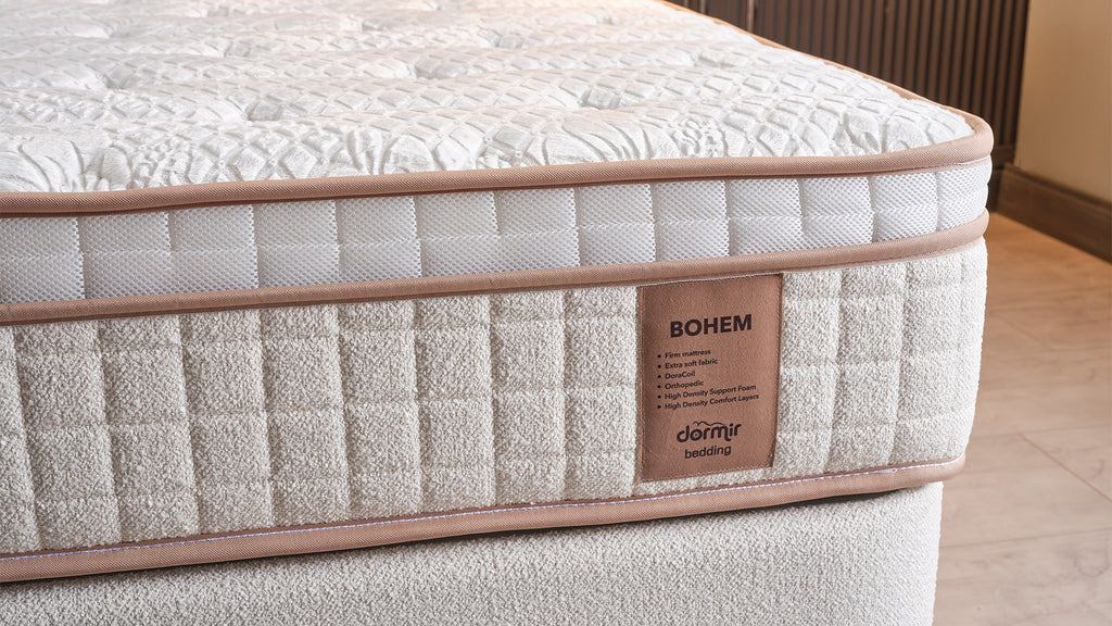 Тапицирано легло «Bohem» + Матрак и табла - с място за съхранение и система за безшумно затваряне