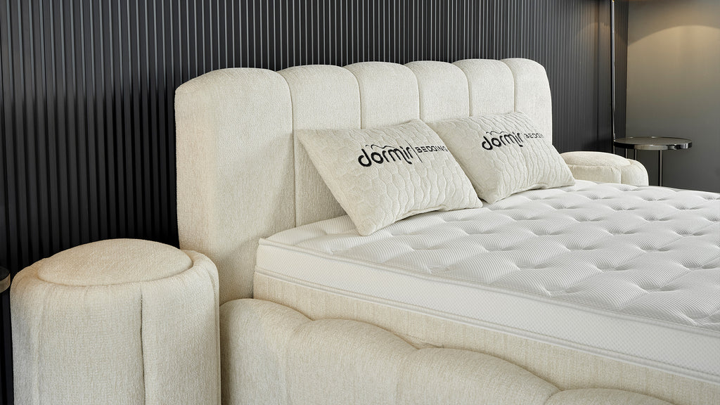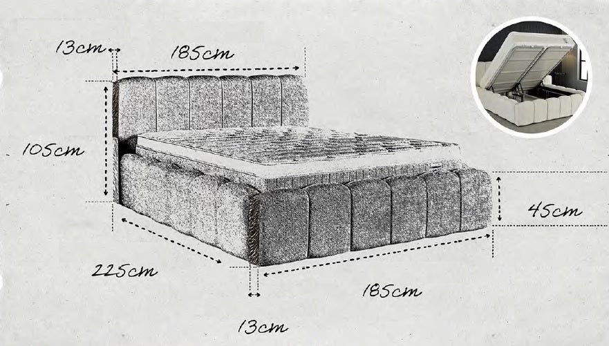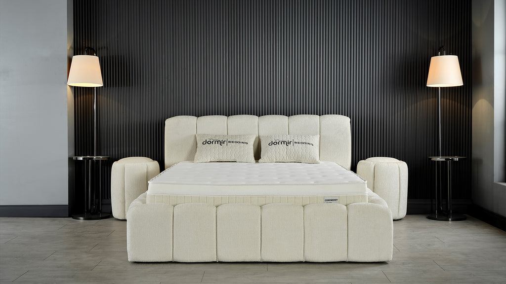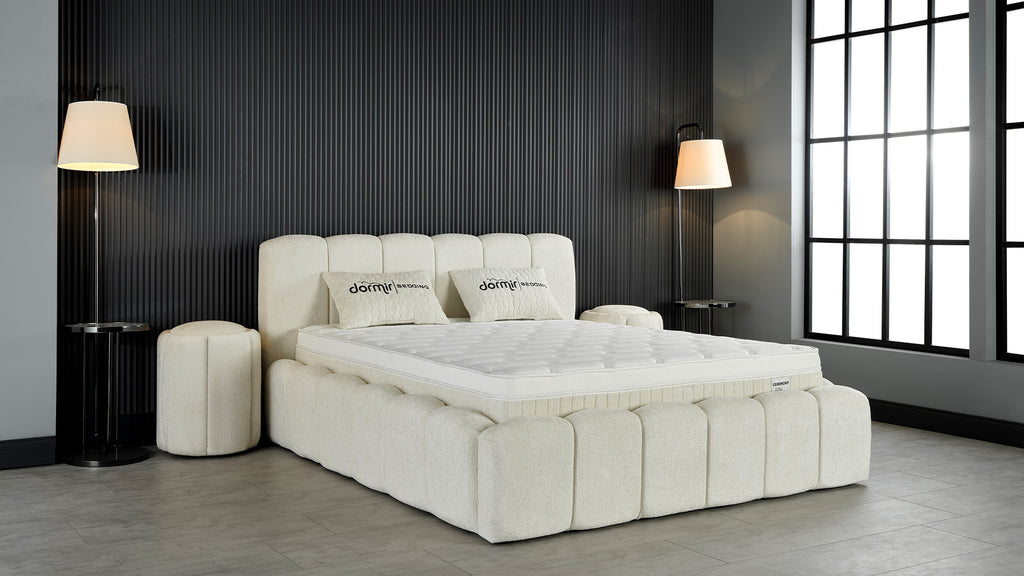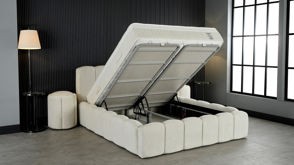 Тапицирано легло «Ceremony» + Матрак и табла - с място за съхранение и система за безшумно затваряне