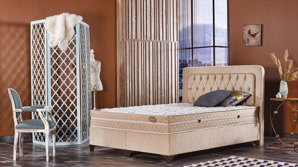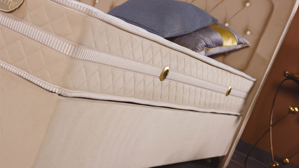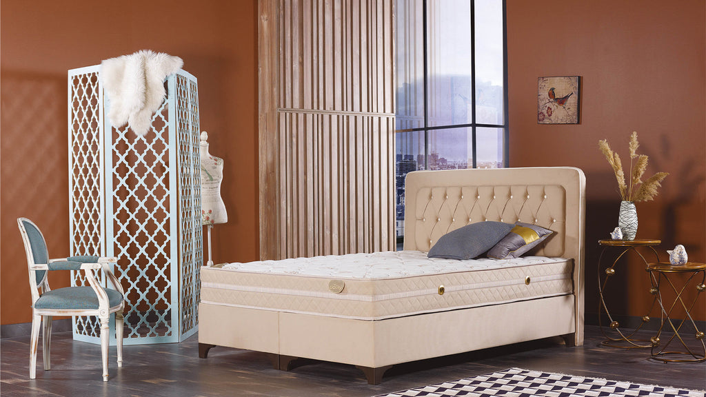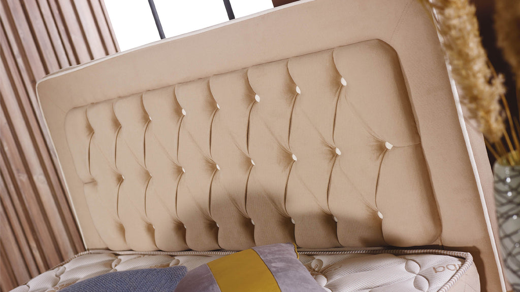 Тапицирано легло «Lima» + Матрак и табла - с място за съхранение и система за безшумно затваряне