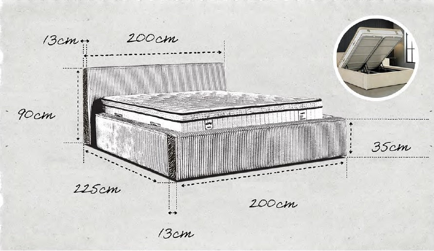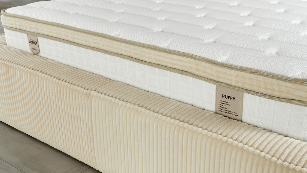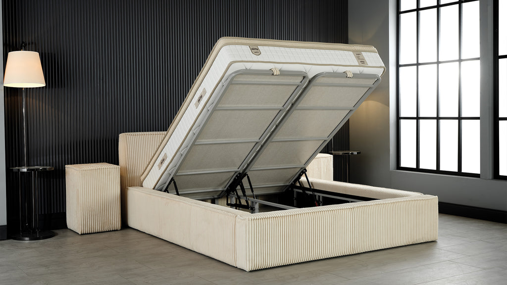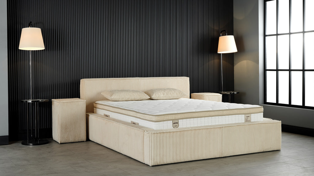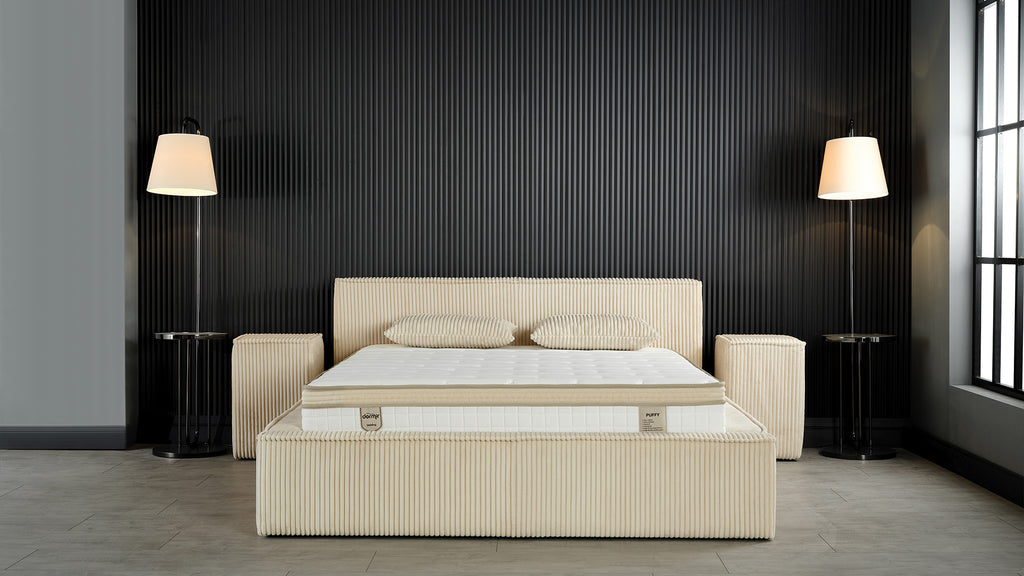 Тапицирано легло «Puffy» + Матрак и табла - с място за съхранение и система за безшумно затваряне