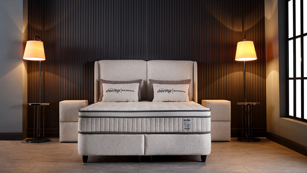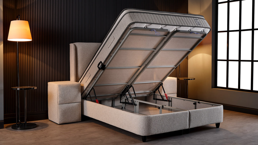 Тапицирано легло «Reina» + Матрак и табла - с място за съхранение и система за безшумно затваряне