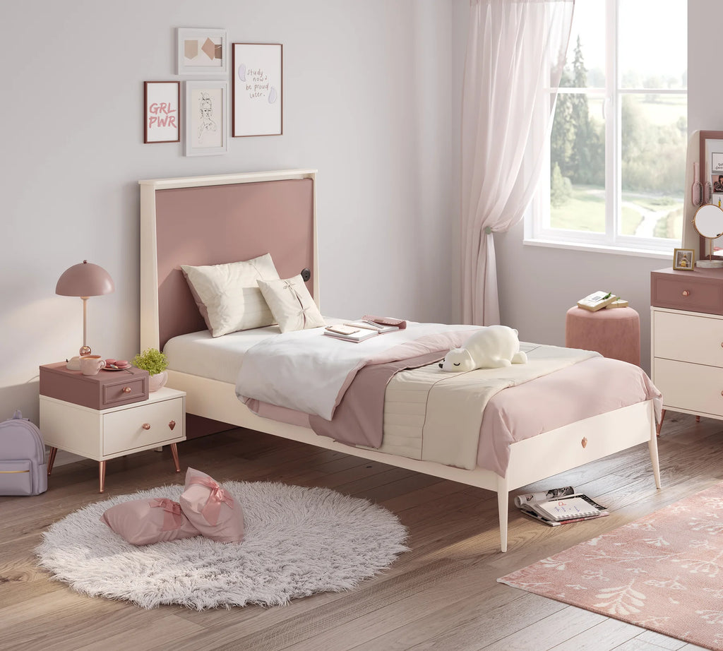Леглото Elegance, с товароносимост 130 кг , се предлага в размери 100x200 см и 120x200 см, подходящо за стаи на млади момичета.