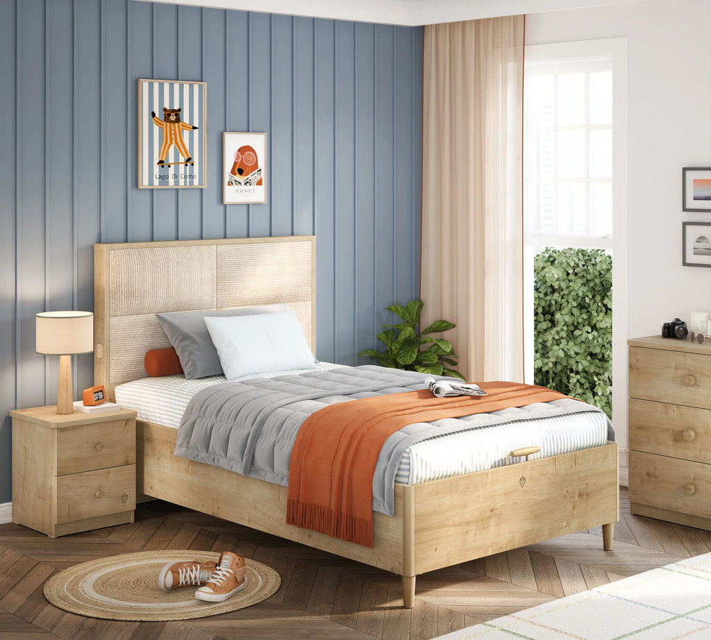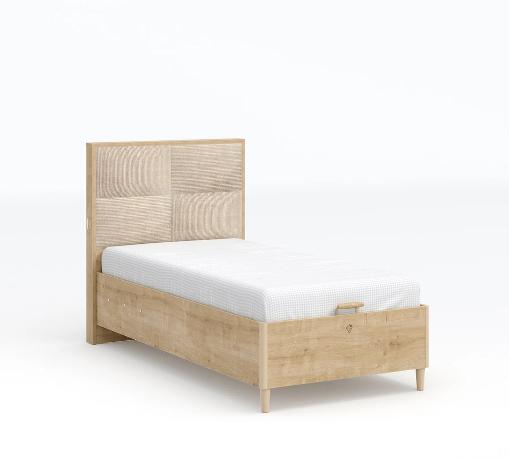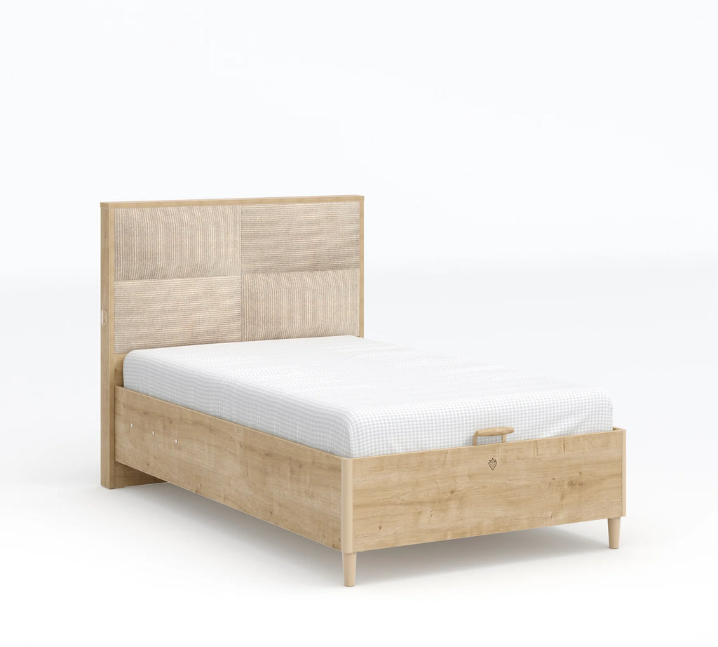 Предназначена за малки стаи, 12-сантиметровата конструкция на краката на основата за легло с размери 100x200 или 120x200 cm предоставя възможност за използване на прахосмукачка робот.