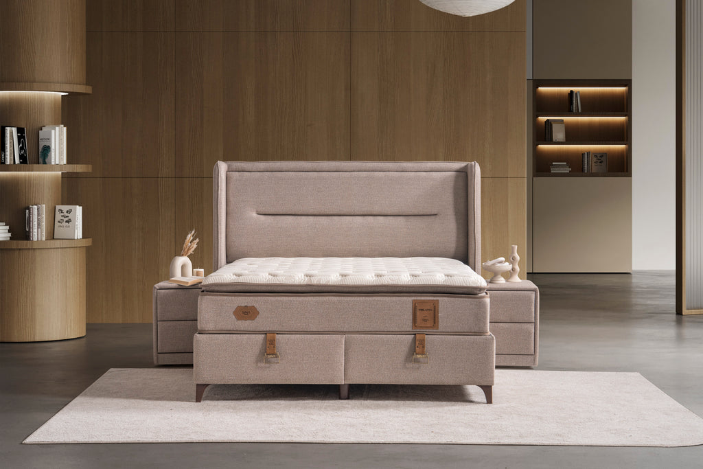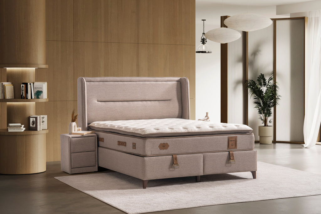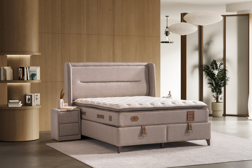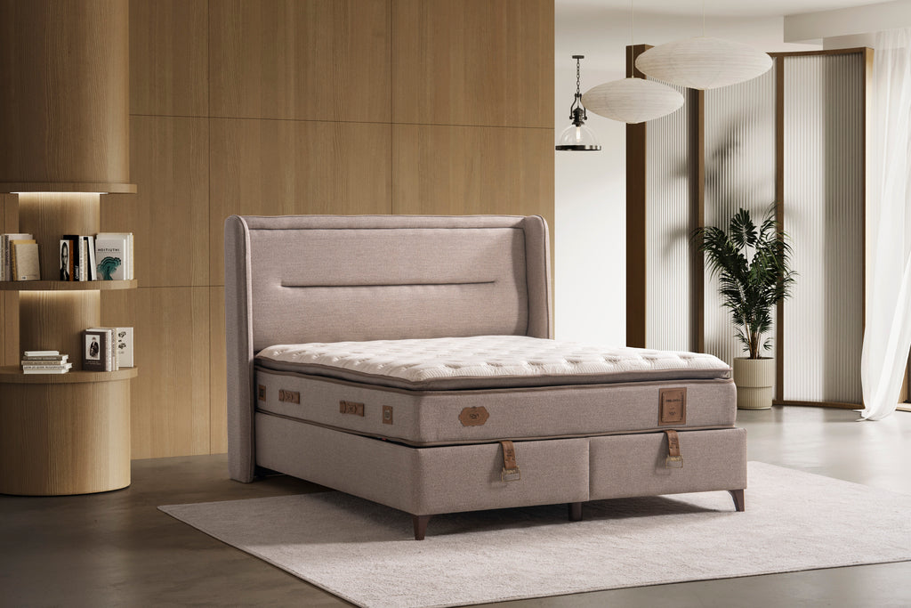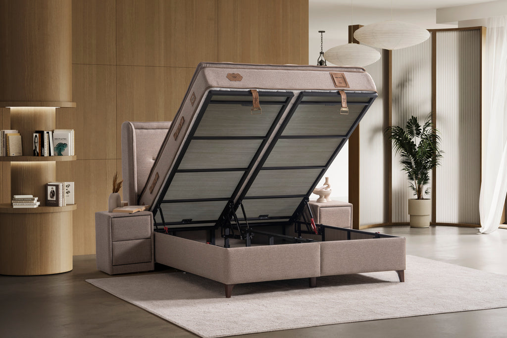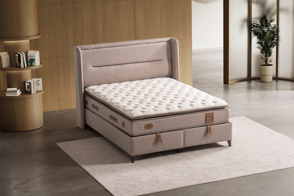 Тапицирано легло «Pirlanta» + Матрак и табла - с място за съхранение, повдигащ механизъм, система за безшумно затваряне