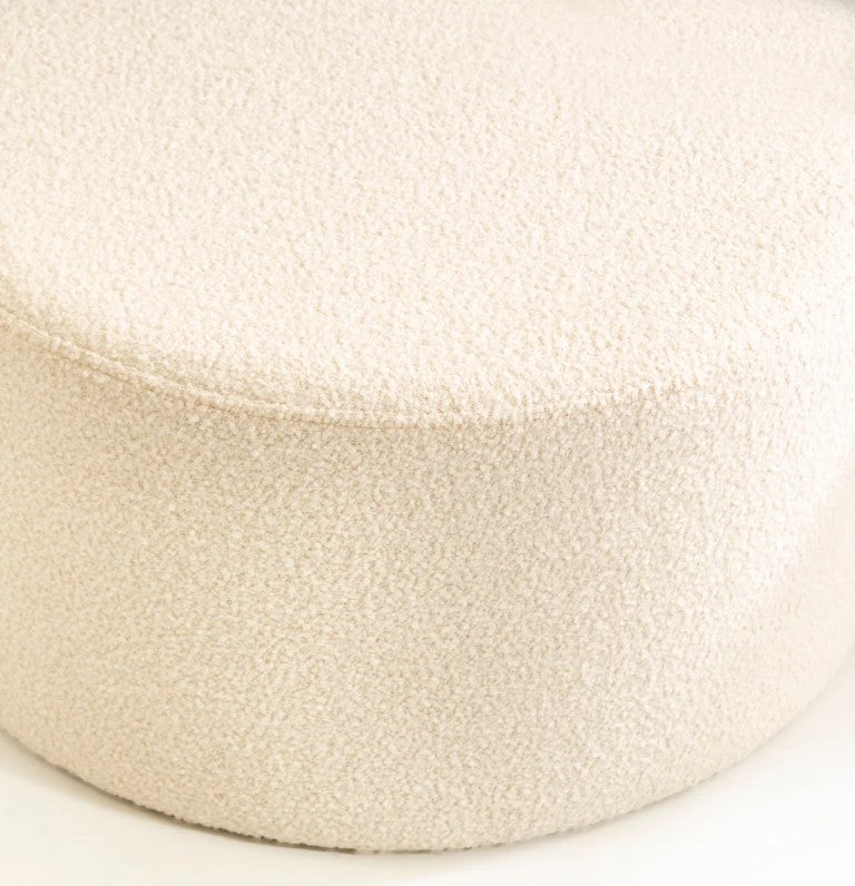 Neva 9379‑01 носи мек баланс в интериора чрез своята овална форма и уютна текстура. Създадена като допълнение към масите от серията Neva, тя внася топлина и тактилно удоволствие със своята бежова повърхност от букле с ленен ефект.