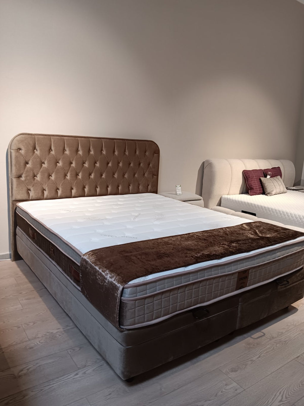 Комплекта включва база с повдигащ механизъм, табла, и матрак Crown.