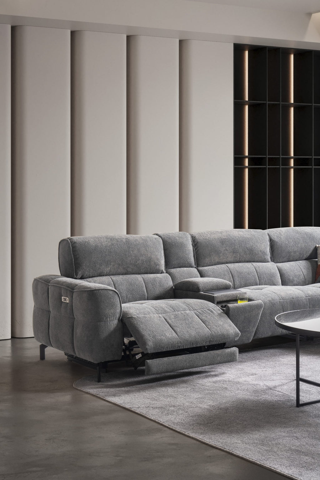 Модулен диван «Lara» + електрически механизъм, USB зарядна станция, конзолна масичка