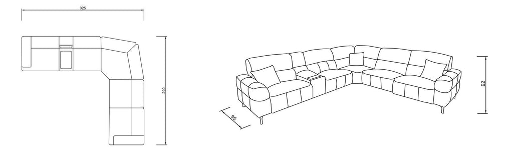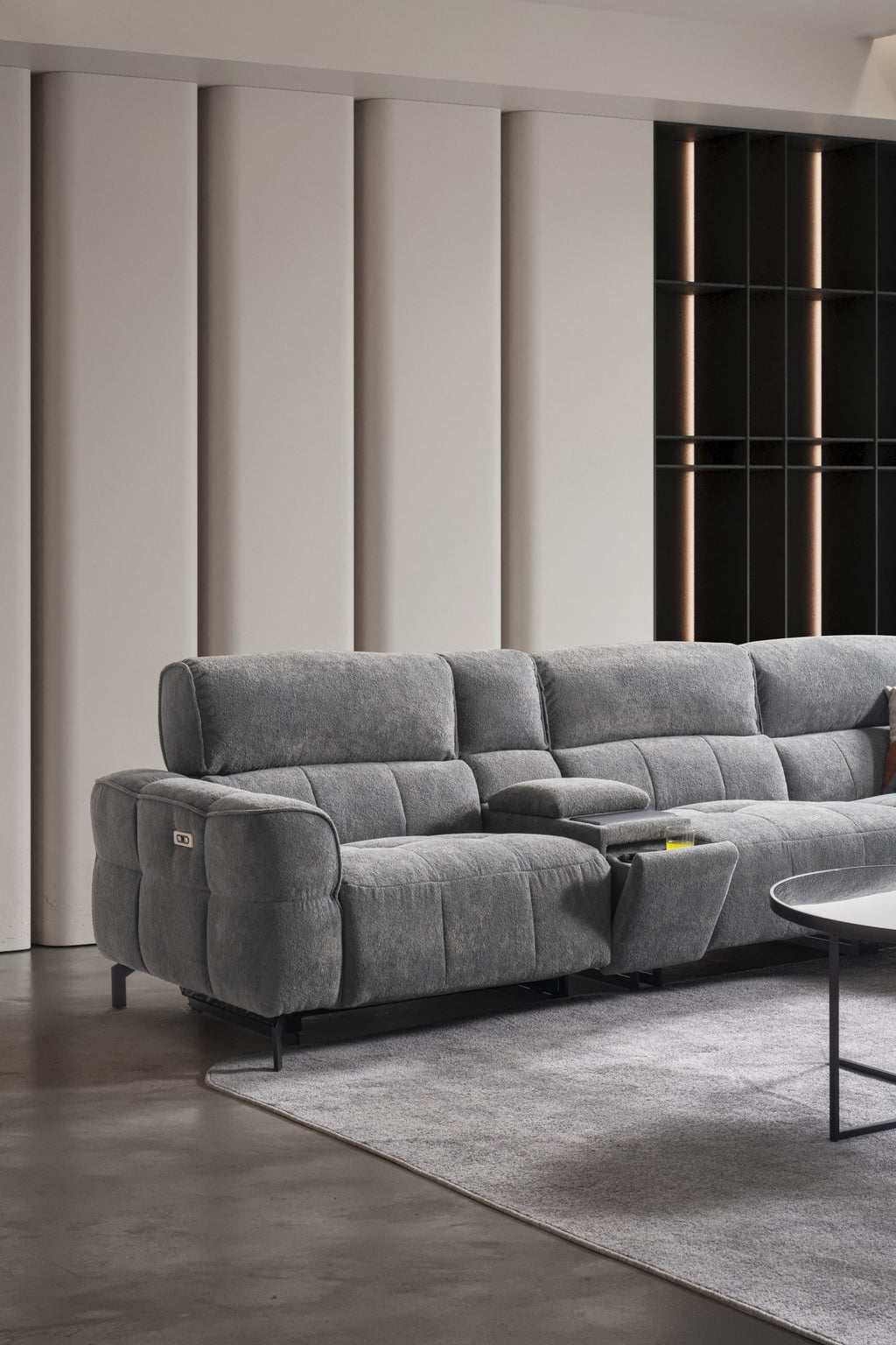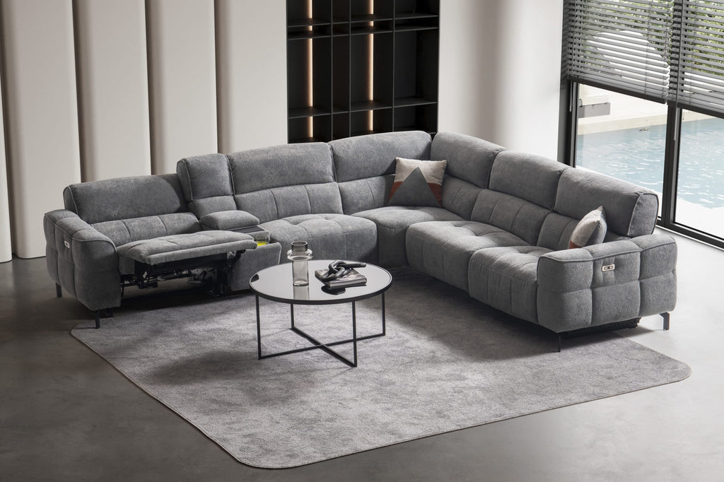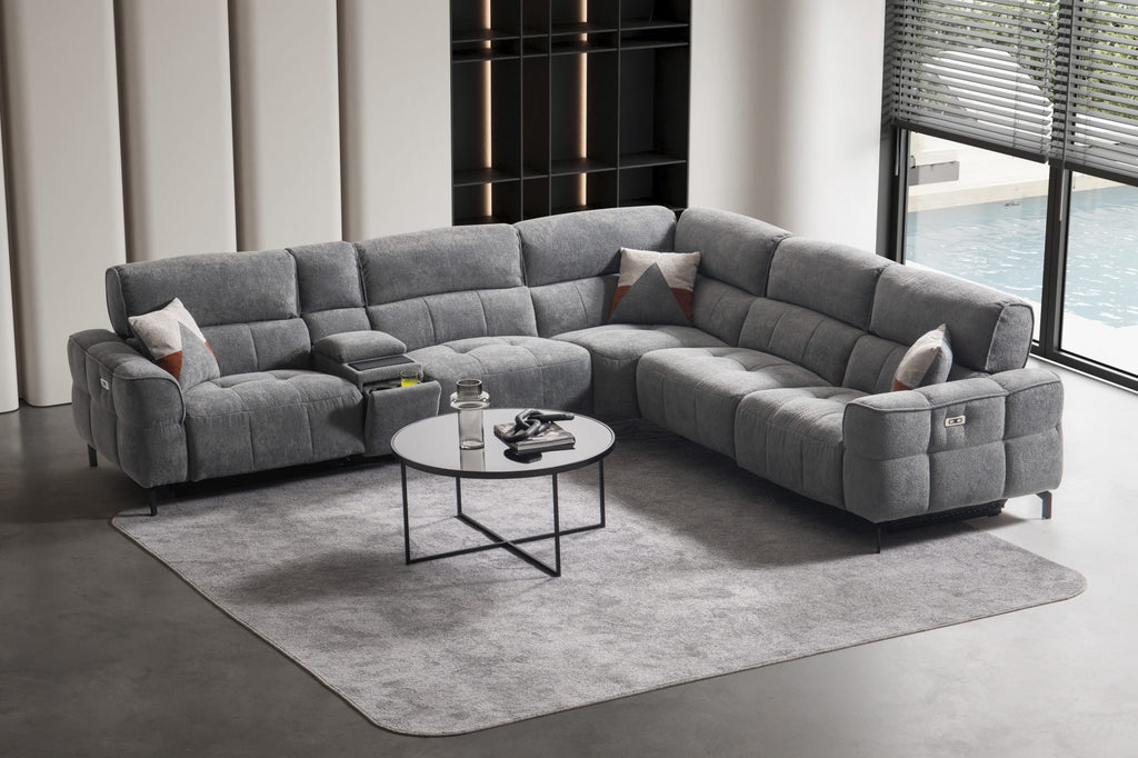 Модулен разтегателен диван «Lara» + електрически механизъм, USB зарядна станция, конзолна масичка