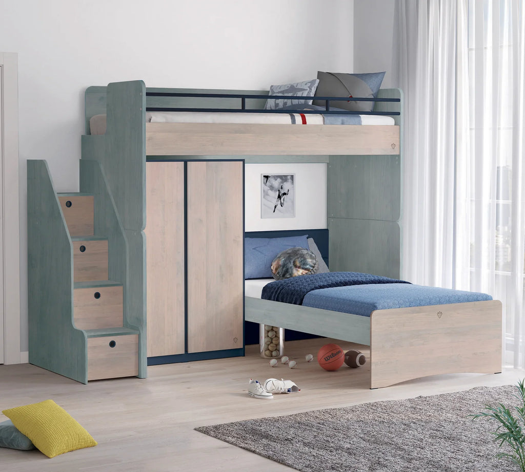 Модулно двуетажно легло «Studio Trio» - Сет 3, с две легла, гардероб и стълби с чекмеджета