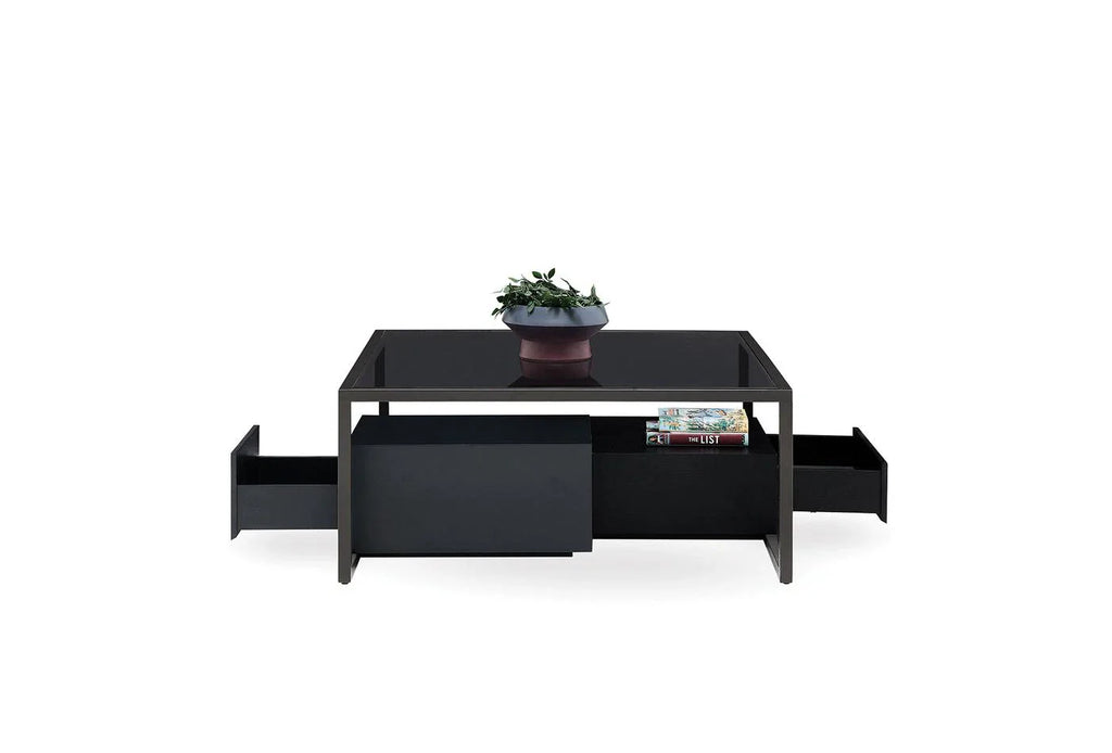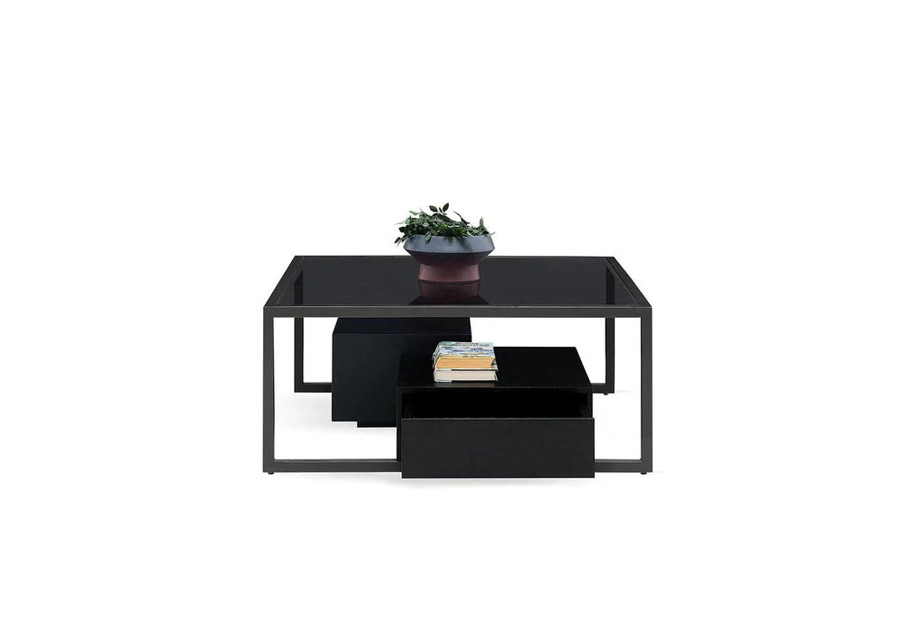 Отличава се с оригинална и съвременна дизайнерска линия, внася модерен щрих в жилищните пространства със своята квадратна форма. Придружена от 2 многофункционални чекмеджета.