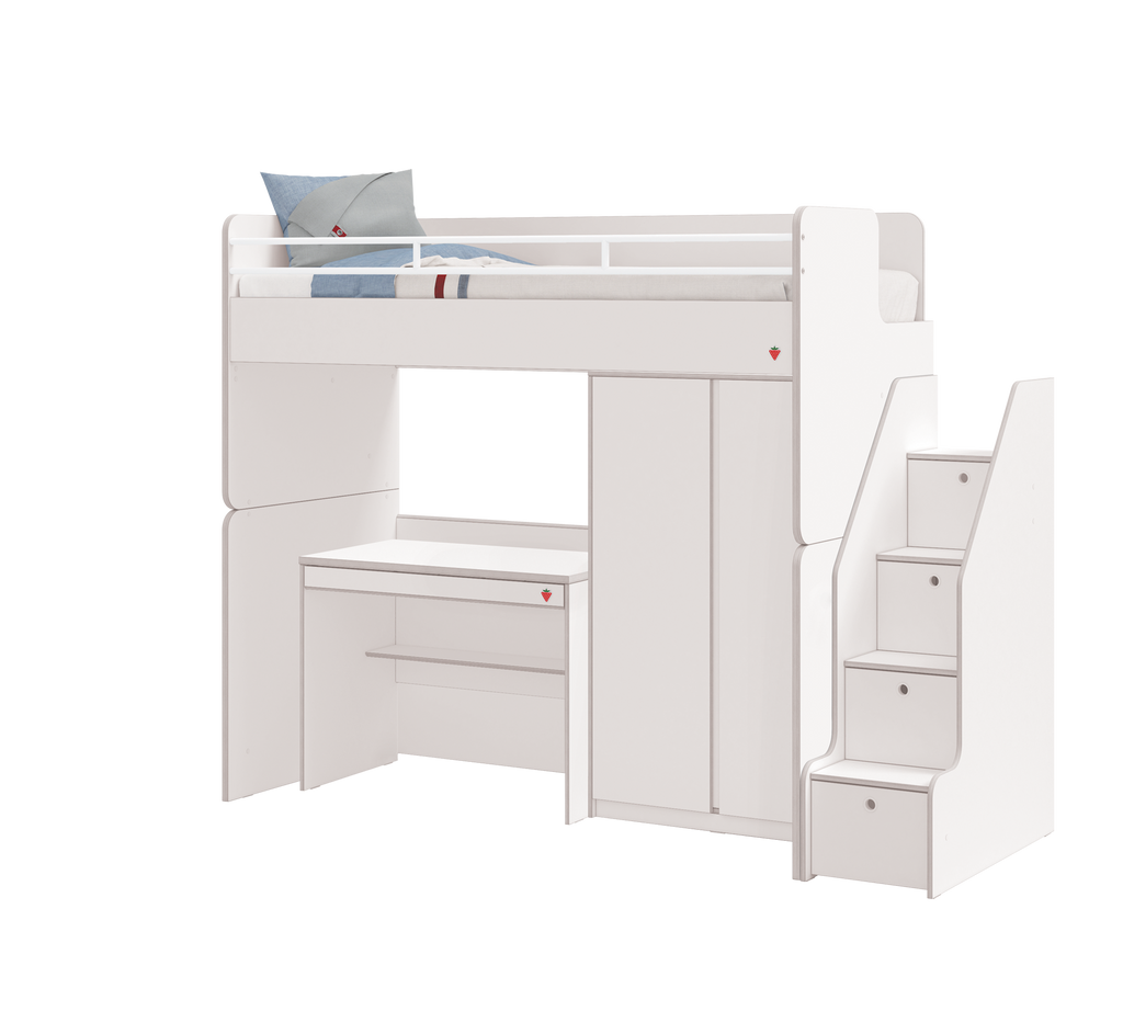 Модулно двуетажно легло «Studio White» - Сет 5, с легло, бюро, гардероб и стълби с чекмеджета