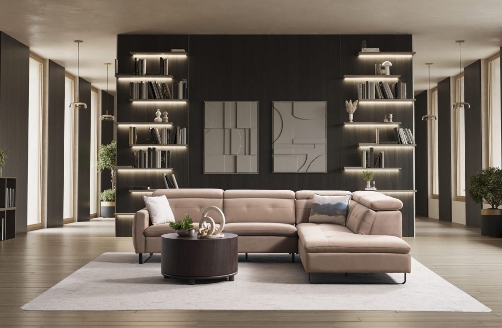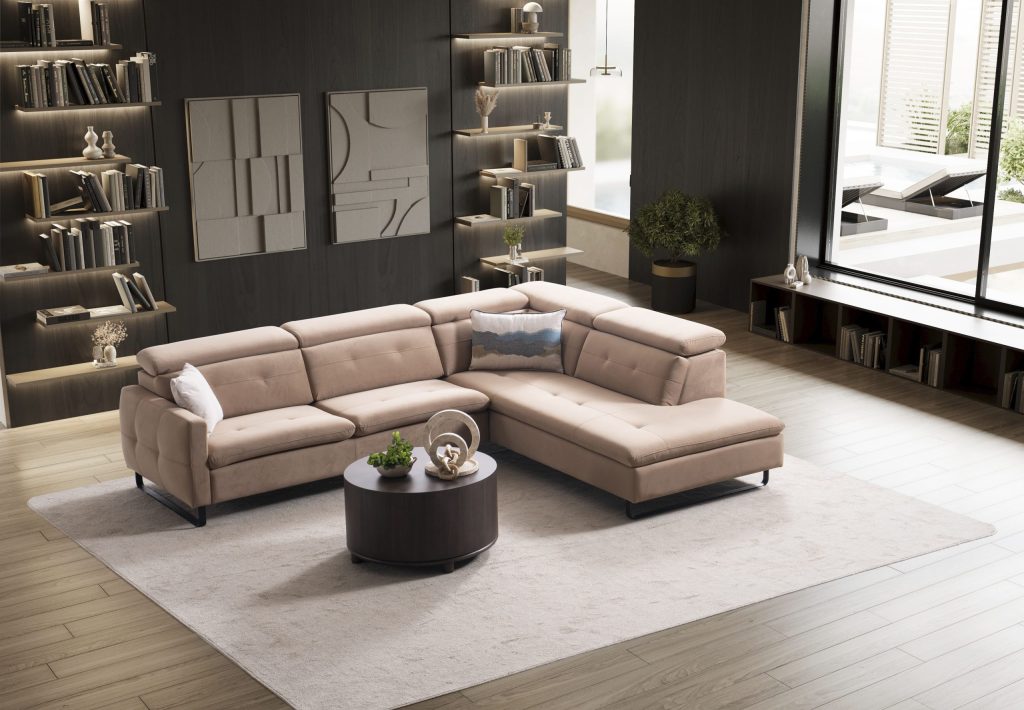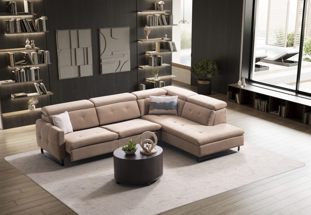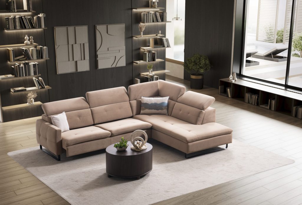 Ъглов разтегателен диван «Gizem Lounge» + електрически механизъм, USB зарядна станция, ширина 315см